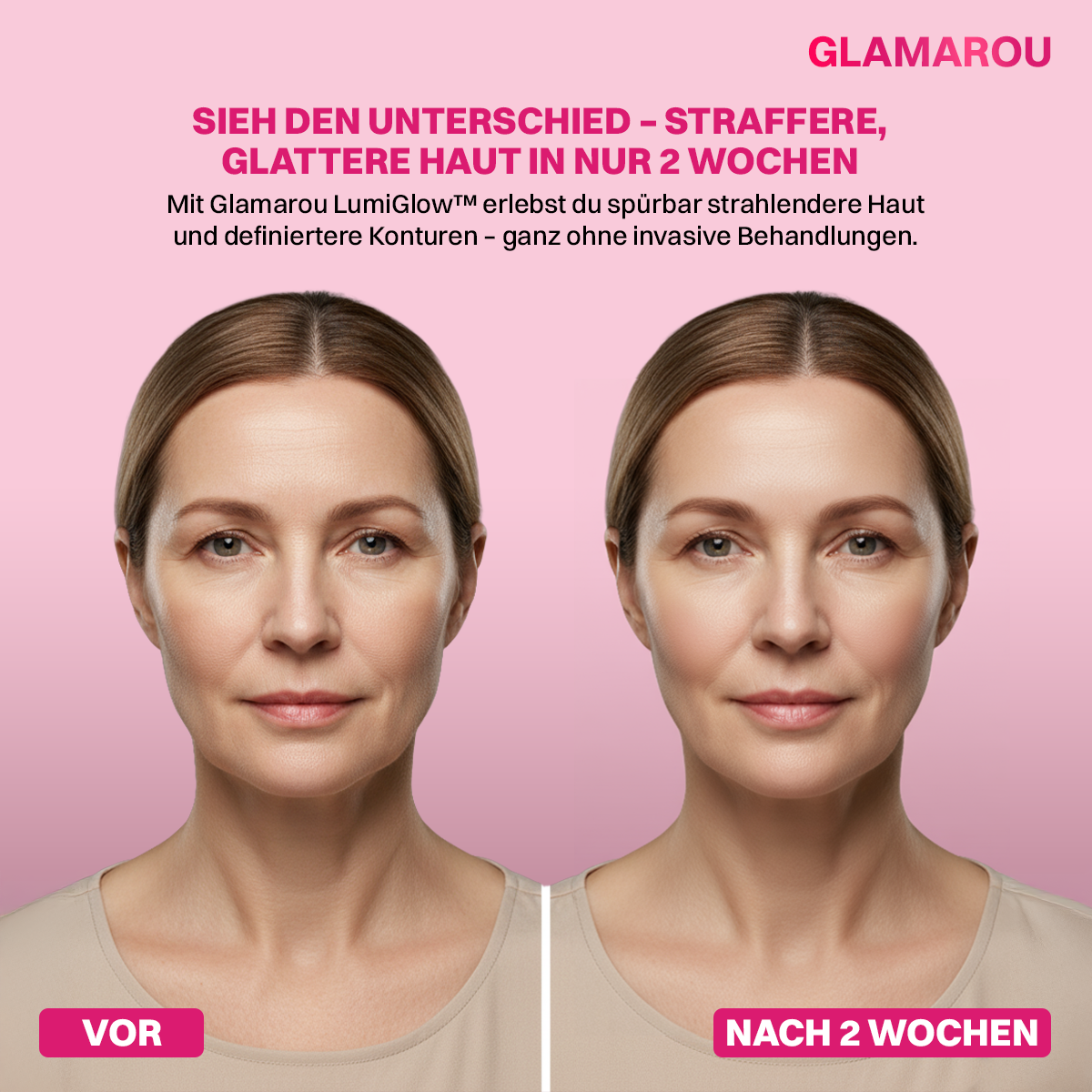 Mit der 5-in-1-Technologie von Glamarou LumiGlow™ aktivierst du die natürliche Kollagenbildung, reduzierst feine Linien und bringst deine Haut sichtbar zum Strahlen – in nur 10 Minuten täglich, ganz ohne Termine oder invasive Behandlungen.